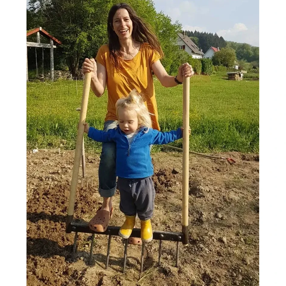 Un outil fantastique ! Après trois années d’usage, une 4 dents pour moi et une 7 dents pour le potager communautaire dont je fais partie, on en est ravis. D’ailleurs je vais commander aujourd’hui une 4 dents pour le potager, car depuis que j’ai prêté la mienne, c’est plutôt moi qui doit l’emprunter ! C’est une taille très appréciée pour la terre argileuse qu’on travaille pour la première fois, ou aussi pour déterrer un arbuste avec sa motte. Ma mère a pris une 3 dents, ça fait office d’une fourche bêche plus profonde et sans fatigue, mais on est moins stable quand on monte dessus. La 4 dents avec arceau est vraiment un excellent choix. La 7 dents est bien pour des planches entretenues, ça va super vite. Je recommande les modèles avec arceau, c’est tellement génial de monter dessus pour les enfoncer dans la terre, et ça donne un bon point d’appui lors du basculement. Les jeunes trouvent cet outil très ludique. A noter qu’au potager on avait déjà acheté une « aérobêche » qui n’a pas tenu 6 mois. Rien à voir comme qualité. Les grelinettes « La PLaisible » sont des outils comme autrefois : on garde le sien pour la vie…